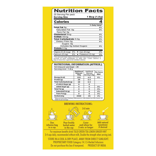 HealthFields wellness Tulsi Green Tea Lemon Ginger Hint | 25 Tea Bags