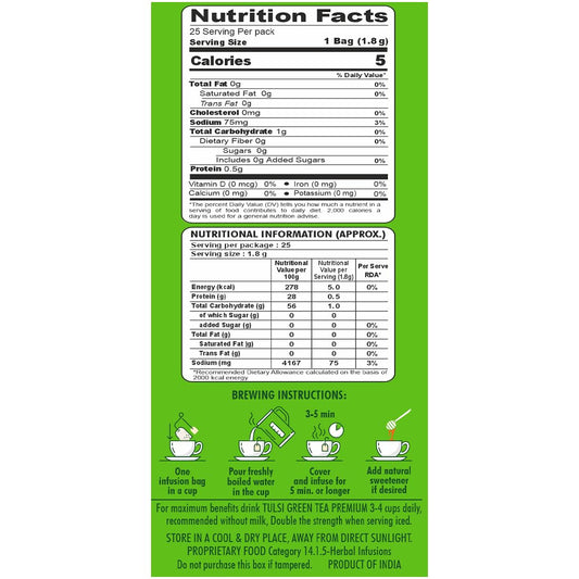 HealthFields Organic Tulsi Green Tea Premium | 25 Tea Bags