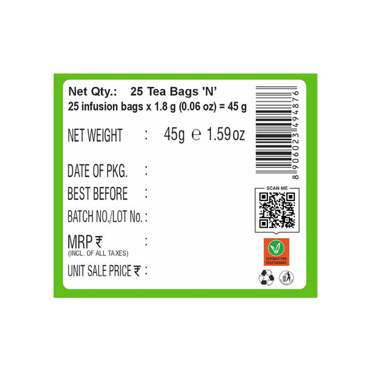 Organic Green Tea (34%), Organic Vana Tulsi (18%), Organic Ginger (14%), Organic Rama Tulsi (10%), Organic...Regular price Rs. 215.00Regular priceUnit price / perSale price Rs. 215.00HealthFields wellness Slimcut Green Tea | 25 Tea Bags
